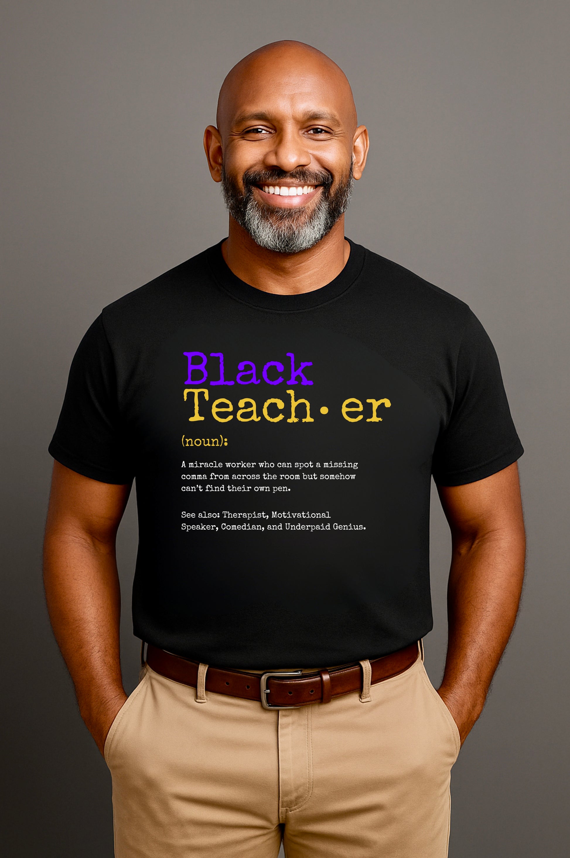 Inspire excellence, uplift young minds, and represent your fraternity with pride with the BLACK Teacher Defined: Omega Man Edition tee. This premium tee is crafted exclusively for the dedicated educators of Omega Psi Phi Fraternity, Inc., blending bold style, comfort, and a powerful message that celebrates Black teachers who lead with Manhood, Scholarship, Perseverance, and Uplift.