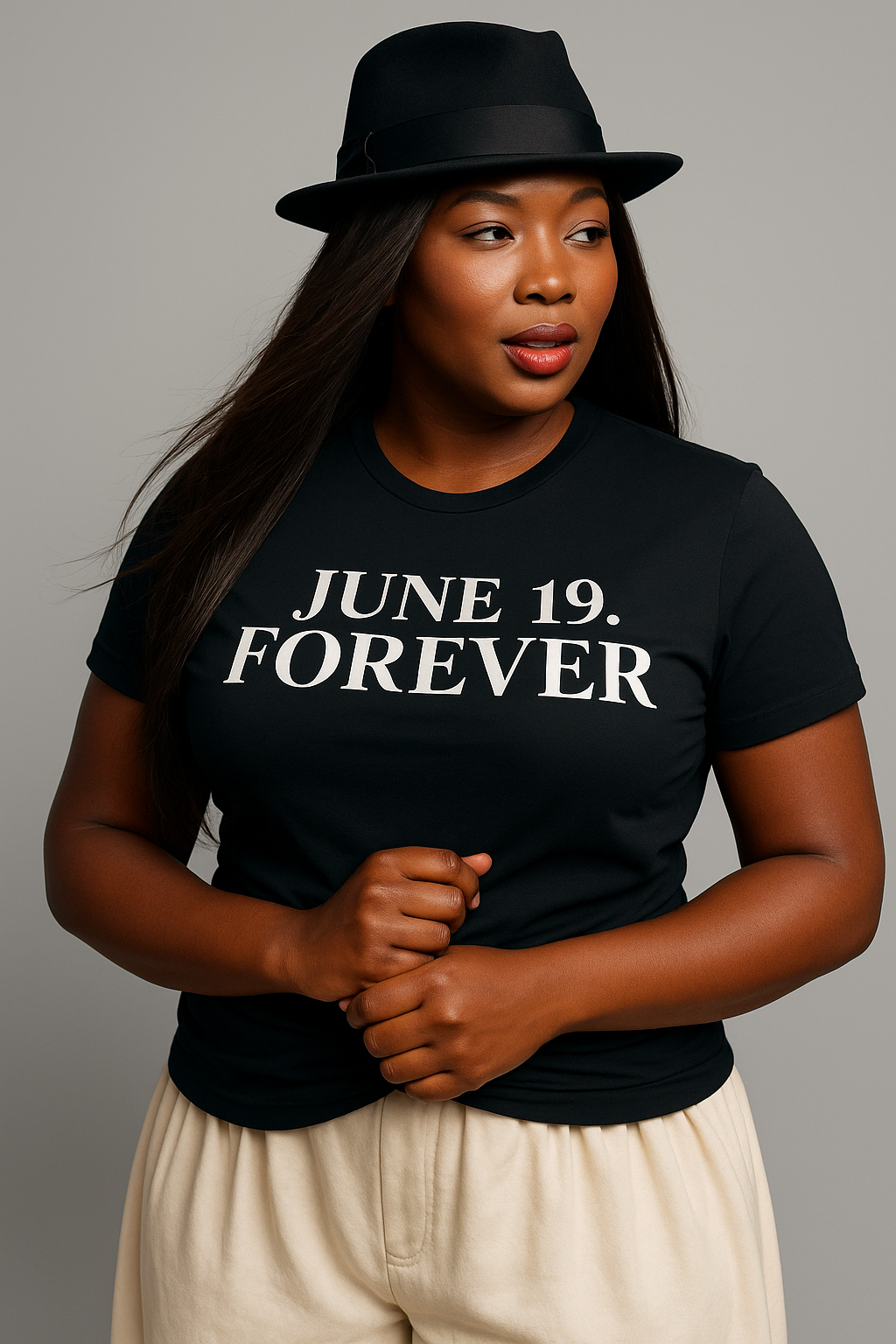 The “June. 19. Forever.” tee is a minimalist tribute to the day freedom was finally declared for all. With clean typography and a classic silhouette, this shirt says everything without saying too much.
