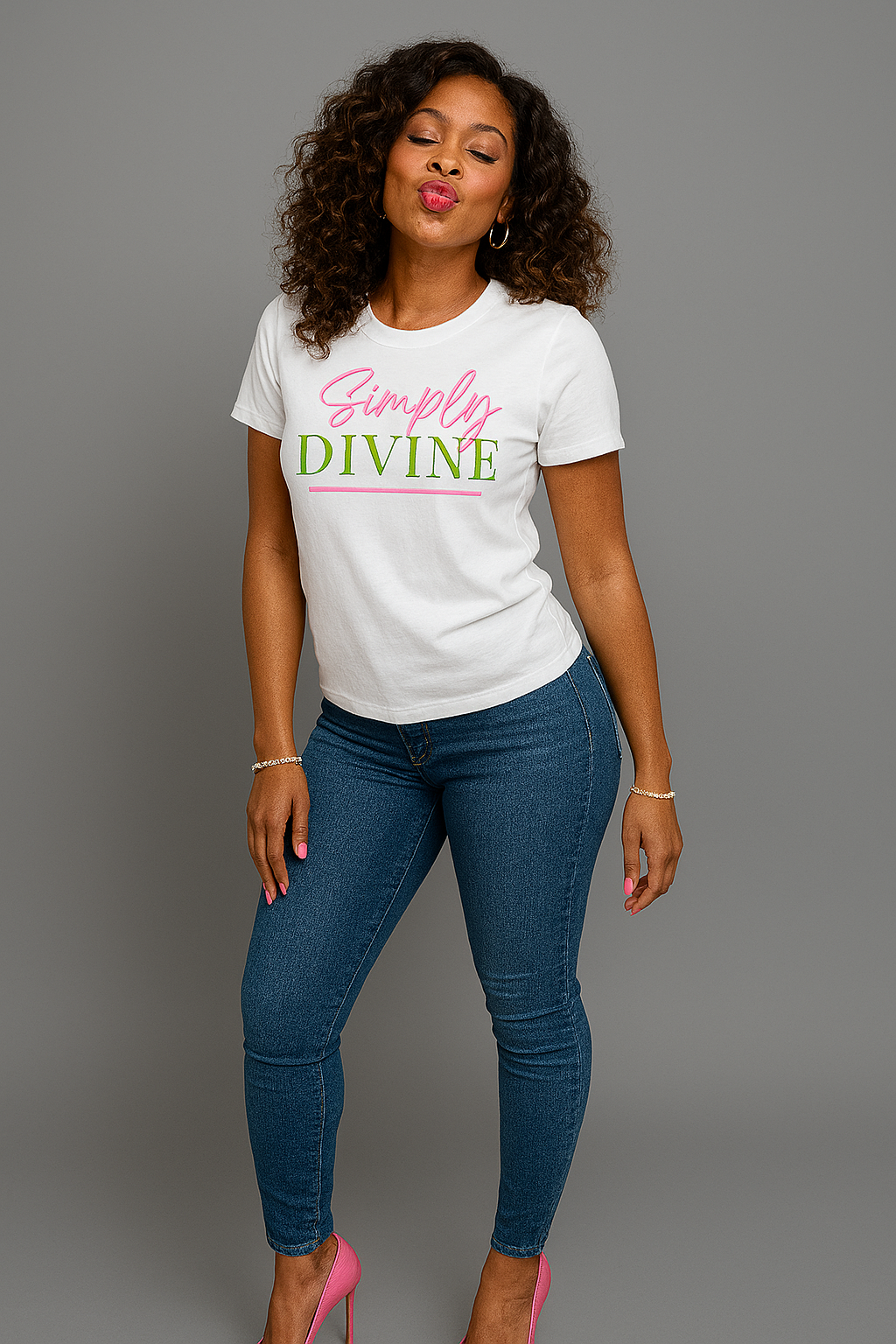 Step into summer with our “Simply Divine” tee, crafted for the confident, stylish soror who knows her worth. This limited-run white tee pops with bold, signature sorority-inspired colors, making it a standout piece for brunches, conferences, and everyday slay.