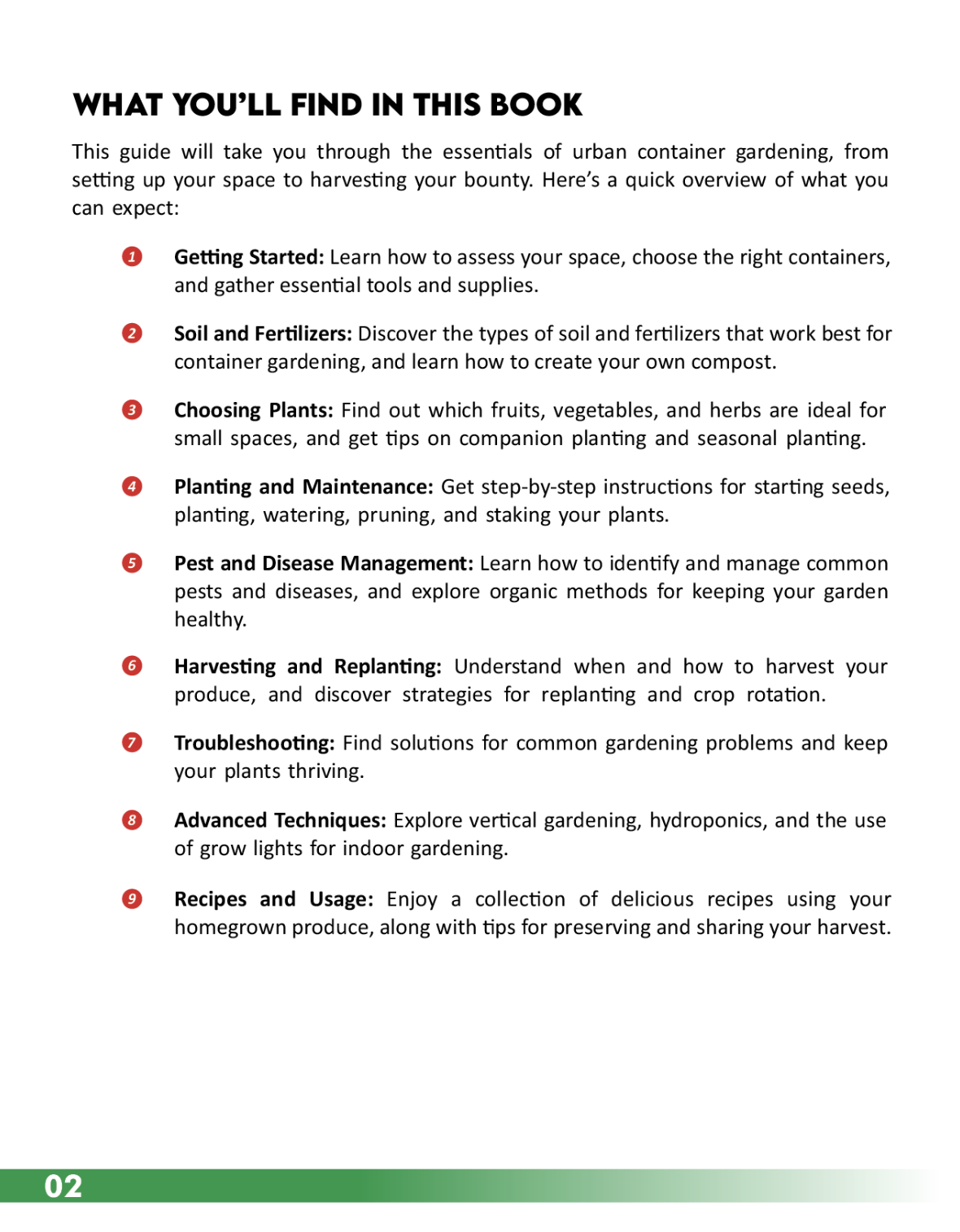 Transform your urban space into a lush, productive garden and experience the joy of harvesting your own fresh produce. Whether you're a novice or a seasoned gardener, "The Urban Harvest: A Guide to Urban Container Gardening" will inspire and guide you every step of the way.