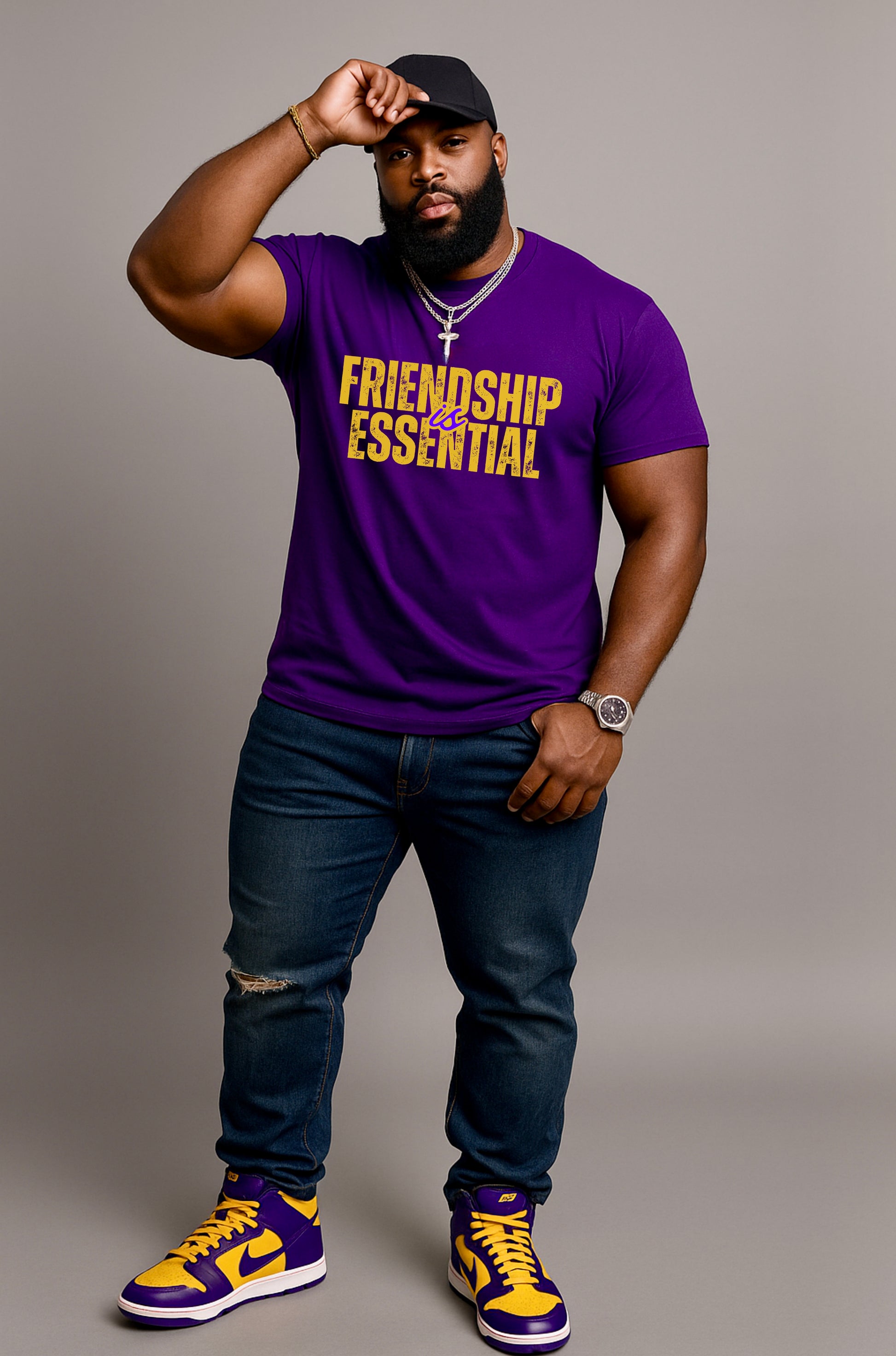 Celebrate the brotherhood of Omega Psi Phi with the "Friendship Is Essential" T-shirt. This tee embodies the timeless motto that binds Omega men together, showcasing the power of friendship, leadership, and upliftment. Crafted with premium, soft fabric, it offers comfort and durability for chapter meetings, community service events, or casual wear. Whether you’re on campus, at a gathering, or simply out and about, let your Omega pride shine—because friendship truly is essential to the soul.