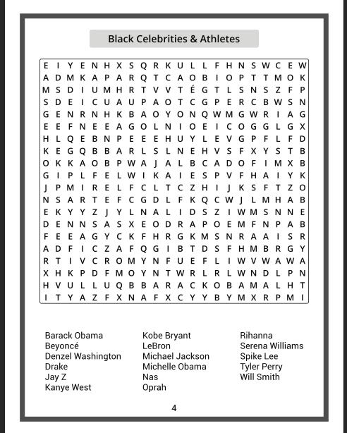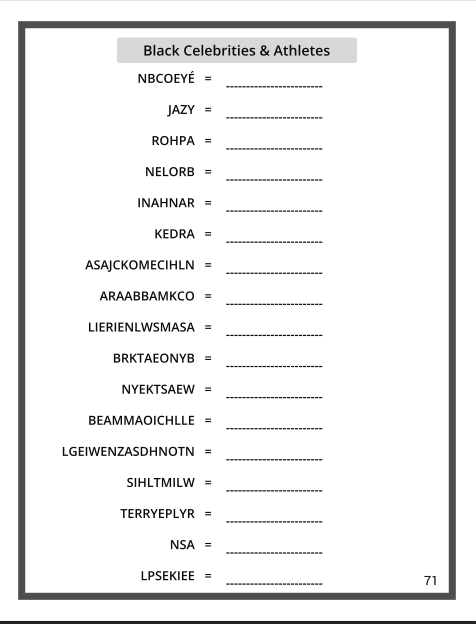 50 Puzzles & Word Searches: Explore puzzles packed with hundreds of words related to African American TV, movies, music, and more.