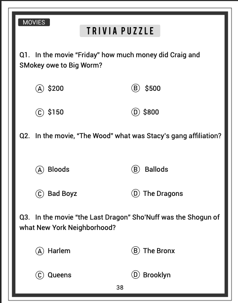 Whether you’re looking for a fun way to relax, challenge your mind, or relive some of the greatest moments in African American entertainment, this book is perfect for you. Ideal for family game nights, solo puzzle solving, or as a gift for the trivia lover in your life.